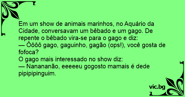 Em um show de animais marinhos, no Aquário da Cidade, conversavam um bêbado e um gago. De repente o bêbado vira-se para o gago e diz: