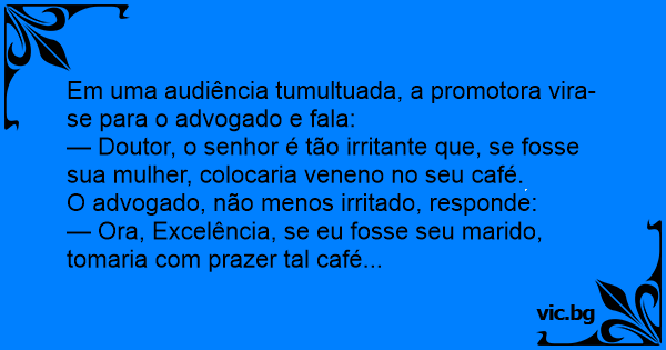 — Doutor, o senhor é tão irritante que, se fosse sua mulher, colocaria veneno no seu café.