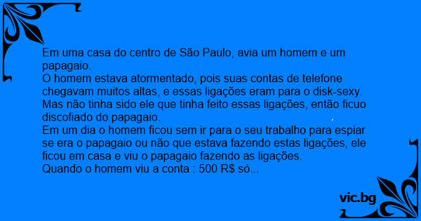 O homem estava atormentado, pois suas contas de telefone chegavam muitos altas, e essas ligações eram para o disk-sеxy. Mas não tinha sido ele que tinha feito essas ligações, então ficuo discofiado do papagaio.