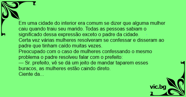Em uma cidade do interior era comum se dizer que alguma mulher caiu quando traiu seu marido. Todas as pessoas sabiam o significado dessa expressão exceto o padre da cidade.