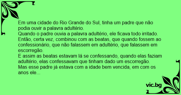 Em uma cidade do Rio Grande do Sul, tinha um padre que não podia ouvir a palavra adultério.