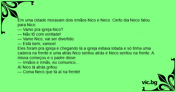 Em uma cidade moravam dois irmãos Nico e Neco. Certo dia Neco falou para Nico: