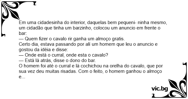 — Quem fizer o cavalo rir ganha um almoço gratis.
