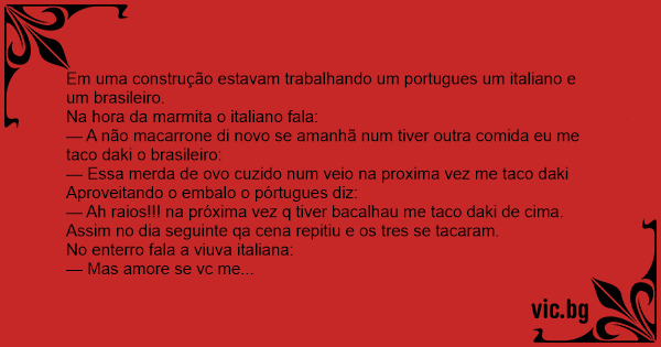 — Essa меrdа de ovo cuzido num veio na proxima vez me taco daki Aproveitando o embalo o pórtugues diz: