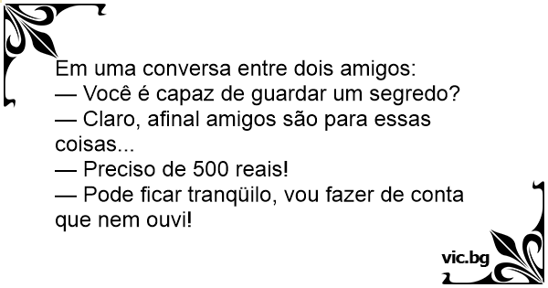 — Pode ficar tranqüilo, vou fazer de conta que nem ouvi!