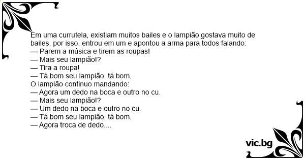 Em uma currutela, existiam muitos bailes e o lampião gostava muito de bailes, por isso, entrou em um e apontou a arma para todos falando: