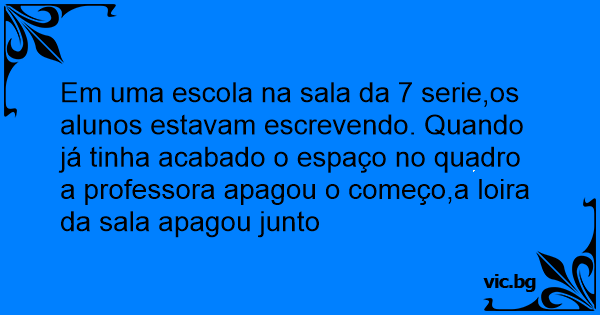 Em uma escola na sala da 7 serie,os alunos estavam escrevendo. Quando já tinha acabado o espaço no quadro a professora apagou o começo,a loira da sala apagou junto