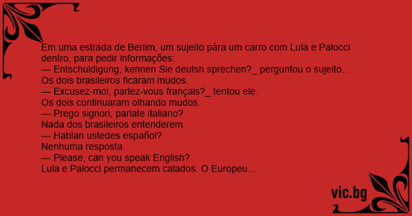 Em uma estrada de Berlim, um sujeito pára um carro com Lula e Palocci dentro, para pedir informações: