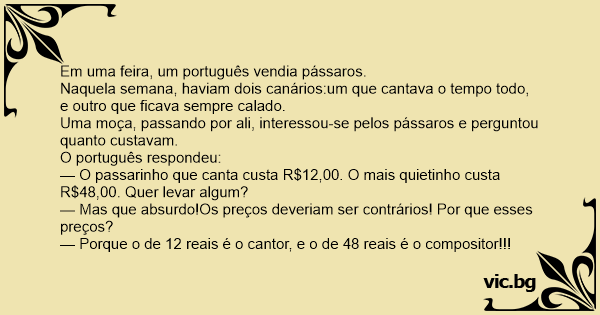 Em uma feira, um português vendia pássaros.