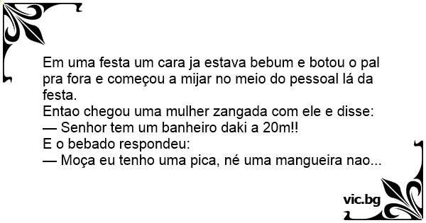 Em uma festa um cara ja estava bebum e botou o pal pra fora e começou a mijar no meio do pessoal lá da festa.