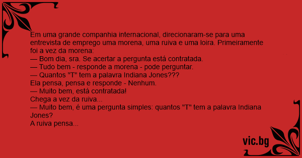— Bom dia, sra. Se acertar a pergunta está contratada.
