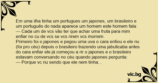 Em uma ilha tinha um portugues um japones, um brasileiro e um português do nada aparece um homem este homem fala: