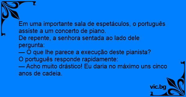 Em uma importante sala de espetáculos, o português assiste a um concerto de piano.