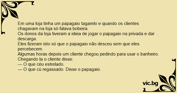 Em uma loja tinha um papagaio tagarelo e quando os clientes chagavam na loja só falava bobeira.