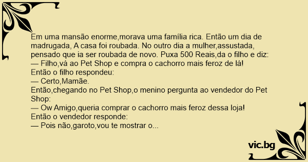 Então,chegando no Pet Shop,o menino pergunta ao vendedor do Pet Shop: