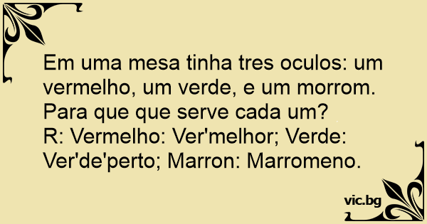 Em uma mesa tinha tres oculos: um vermelho, um verde, e um morrom. Para que que serve cada um?