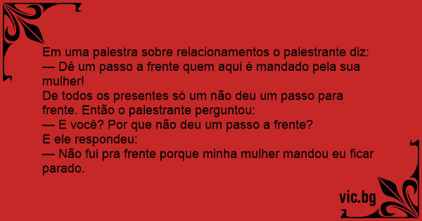De todos os presentes só um não deu um passo para frente. Então o palestrante perguntou: