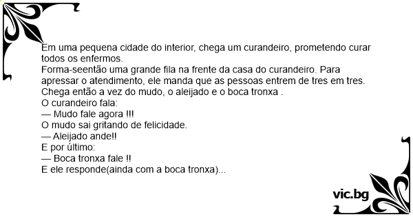 Chega então a vez do mudo, o aleijado e o boca tronxa .