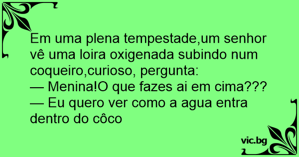 Em uma plena tempestade,um senhor vê uma loira oxigenada subindo num coqueiro,curioso, pergunta: