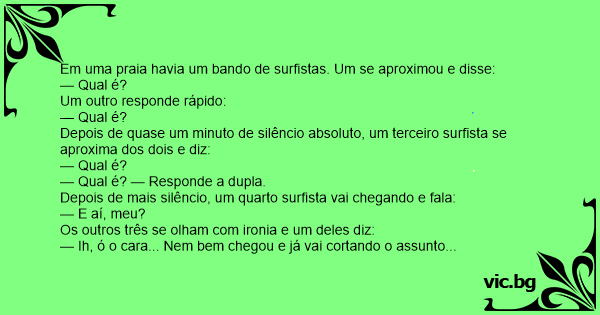 Depois de mais silêncio, um quarto surfista vai chegando e fala: