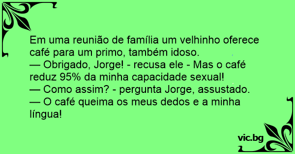 — Obrigado, Jorge! - recusa ele - Mas o café reduz 95% da minha capacidade sеxuаl!