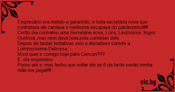 Certto dia contratou uma Secretária nova, Loira, Lindíssima, Super Gostosa, mas nem dava bola prás cantadas dele.