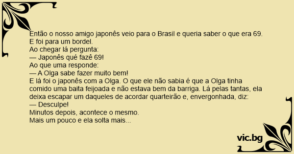 Então o nosso amigo japonês veio para o Brasil e queria saber o que era 69. E foi para um bordel.