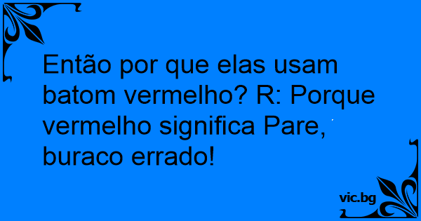 Então por que elas usam batom vermelho? R: Porque vermelho significa Pare, buraco errado!