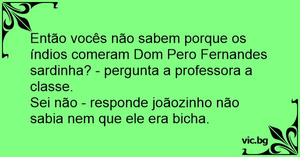 Então vocês não sabem porque os índios comeram Dom Pero Fernandes sardinha? - pergunta a professora a classe.