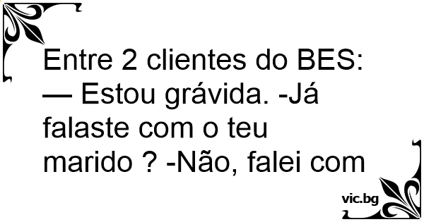 — Estou grávida. -Já falaste com o teu marido ? -Não, falei com o teu !