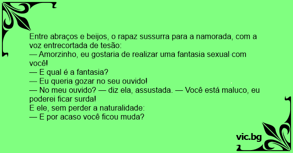 απ΄τ αυτιά Ο Μήτσος και η Μαρία муж и жена в постели. муж: дорогая, так хочется новизны в сексе,... Семейство празнува 20-годишнина от сватбата си. Абе жена, айде да променим нещо в секса? Мъж се обръща към жена си: - А давай я тебя в ухо тр@хну... Au lit, un homme dit tendrement à sa femme : Un homme dit a sa femme : - J aimerais mettre mon sexe dans ton oreille la femme répond : - Ok mais attention que je devienne pas sourde. - ça fait 40ans que je te la mets dans la bouche et t'a... A man says to his wife, "I fancy kinky sex, how about I blow my load in your ear?" The wife hastily replies, "No, I might go deaf!" To which the man replies, "I've been shooting my love wads in... Na hora do almoço a secretária foi dar uma trepada com o chefe em seu gabinete, o chefe falou? - Deixa eu gozá no seu ouvido?? - Não... aí eu fico surda! - Ah, mas a semana passada você não... Nej for helvede “Må jeg komme i dit øre?” Konen: “Nej du må ej, jeg kunne blive døv” Manden: “Nej, jeg er kommet i din mund i 20 år, og du kan stadigvæk ikke holde din kæft” – Cara, ho voglia di scoparti. – No, stasera non posso, ho le mie cose. – Allora te lo metto nel culo… – Non posso, ho le emorroidi. – E se te lo mettessi nell’orecchio??? – Ma non divento sorda???... Man zegt tegen vrouw: Zeg, mag ik vanavond es uw oor neuken? Vrouw: ga ik dan ni doof worden, Man : tuurlijk nie, 'k steek em al 15 jaar in uwe mond en ge zwijgt nog ni Een man komt thuis van zijn werk en roept zijn vrouw bij zich. "Schatje" zegt hij " mag ik hem eens in jou oor steken ?" "In mijn oor ?!?" zegt de vrouw verontwaardigd "nee je mag hem niet in mijn... Zegt Camiel tegen z’n vrouw: “Zeg Maria…, is ‘t goed dakkem ‘ne keer in je oor steek?” Zegt Maria : “Jah maar Camiel, ik ga er toch ni doof van worden hé?” Zegt Camiel terug : “Maar bijlange ni, ik... Marido: querida me dejas que te la ponga por la oreja Esposa: ay no me vas a dejar sorda Marido: pero si siempre te la pongo por la boca y nunca te quedaste muda A cigány azt mondja a feleségének: - Anyjuk, ma a füledbe dugom jó? - Nem jó apjuk, mert megsüketülök! - Süketülsz meg az anyád hétszentségét, múltkor a szádba dugtam, mégsem némultál meg! Theres a man and a woman the man says honey can I stick my dick in your ear, she says no it may cause me to go deaf, the man says will I'm gonna stick my dick in yo mouth so u shut the f*ck up Due fidanzati devono fare sesso il fidanzato le dice: "Oggi il cazzo te lo posso mettere nell'orecchio?" E la fidanzata: "Ma sei scemo?così divento sorda" E il fidanzato: "Perchè tutte le altre...