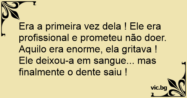 Era a primeira vez dela ! Ele era profissional e prometeu não doer. Aquilo era enorme, ela gritava ! Ele deixou-a em sangue... mas finalmente o dente saiu !