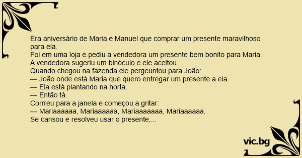 Era aniversário de Maria e Manuel que comprar um presente maravilhoso para ela.