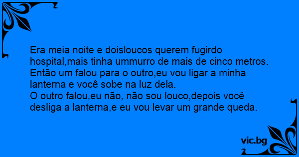 Era meia noite e doisloucos querem fugirdo hospital,mais tinha ummurro de mais de cinco metros.