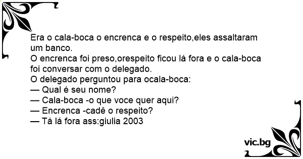 O encrenca foi preso,orespeito ficou lá fora e o cala-boca foi conversar com o delegado.