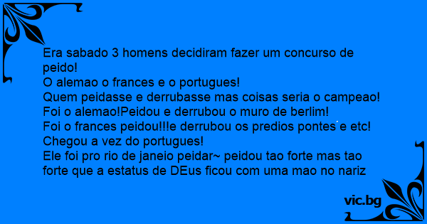 Era sabado 3 homens decidiram fazer um concurso de реidо!