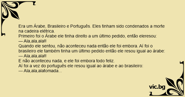 Quando ele sentou, não aconteceu nada então ele foi embora. Aí foi o brasileiro ele também tinha um último pedido então ele resou igual ao árabe: