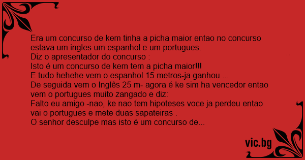 Era um concurso de kem tinha a picha maior entao no concurso estava um ingles um espanhol e um portugues.