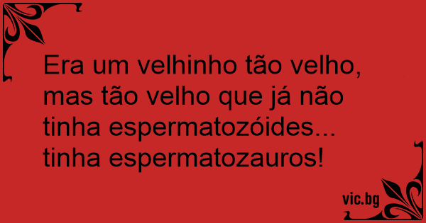 Era um velhinho tão velho, mas tão velho que já não tinha espermatozóides... tinha espermatozauros!