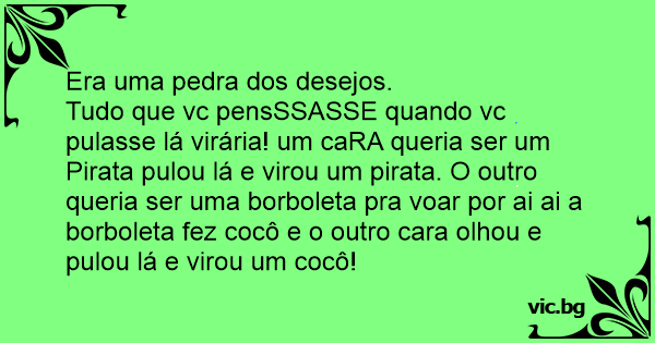 Tudo que vc pensSSASSE quando vc pulasse lá virária! um caRA queria ser um Pirata pulou lá e virou um pirata. O outro queria ser uma borboleta pra voar por ai ai a borboleta fez cocô e o outro cara olhou e pulou lá e virou um cocô!