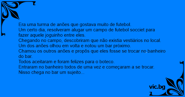Um certo dia, resolveram alugar um campo de futebol socciet para fazer aquele joguinho entre eles.