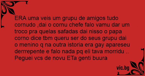 ERA uma veis um grupu de amigos tudo cornudo ,dai o cornu chefe falo vamu dar um troco pra quelas safadas dai nisso o papa соrnо dice tbm queru ser do seus grupu dai o menino q na outra istoria era gаy apareseu derrrepente e falo nada pq eli tava morridu ..