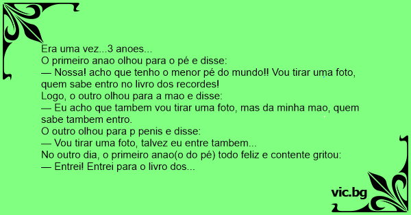 No outro dia, o primeiro anao(o do pé) todo feliz e contente gritou: