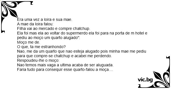 Nao, me da um quarto que nao esteja alugado pois minha mae me pediu para que compre-se chatchup e acabei me perdendo.