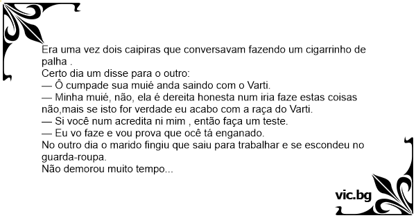 Era uma vez dois caipiras que conversavam fazendo um cigarrinho de palha .
