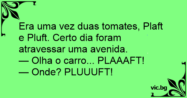 Era uma vez duas tomates, Plaft e Pluft. Certo dia foram atravessar uma avenida.