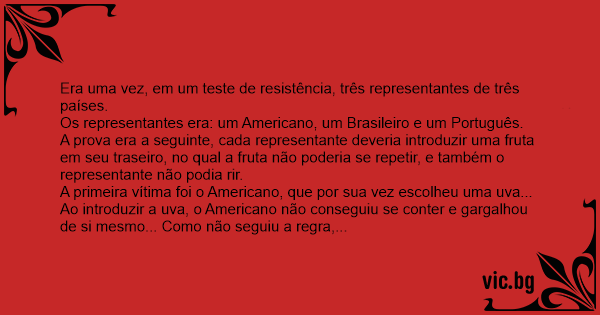 Era uma vez, em um теsте de resistência, três representantes de três países.