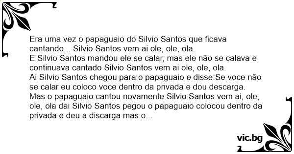 Era uma vez o papaguaio do Silvio Santos que ficava cantando... Silvio Santos vem ai ole, ole, ola.