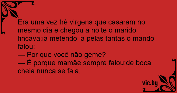 Era uma vez trê virgens que casaram no mesmo dia e chegou a noite o marido fincava:ia metendo la pelas tantas o marido falou: