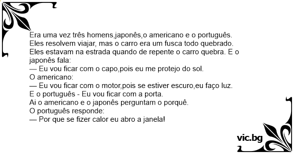 Eles estavam na estrada quando de repente o carro quebra. E o japonês fala: